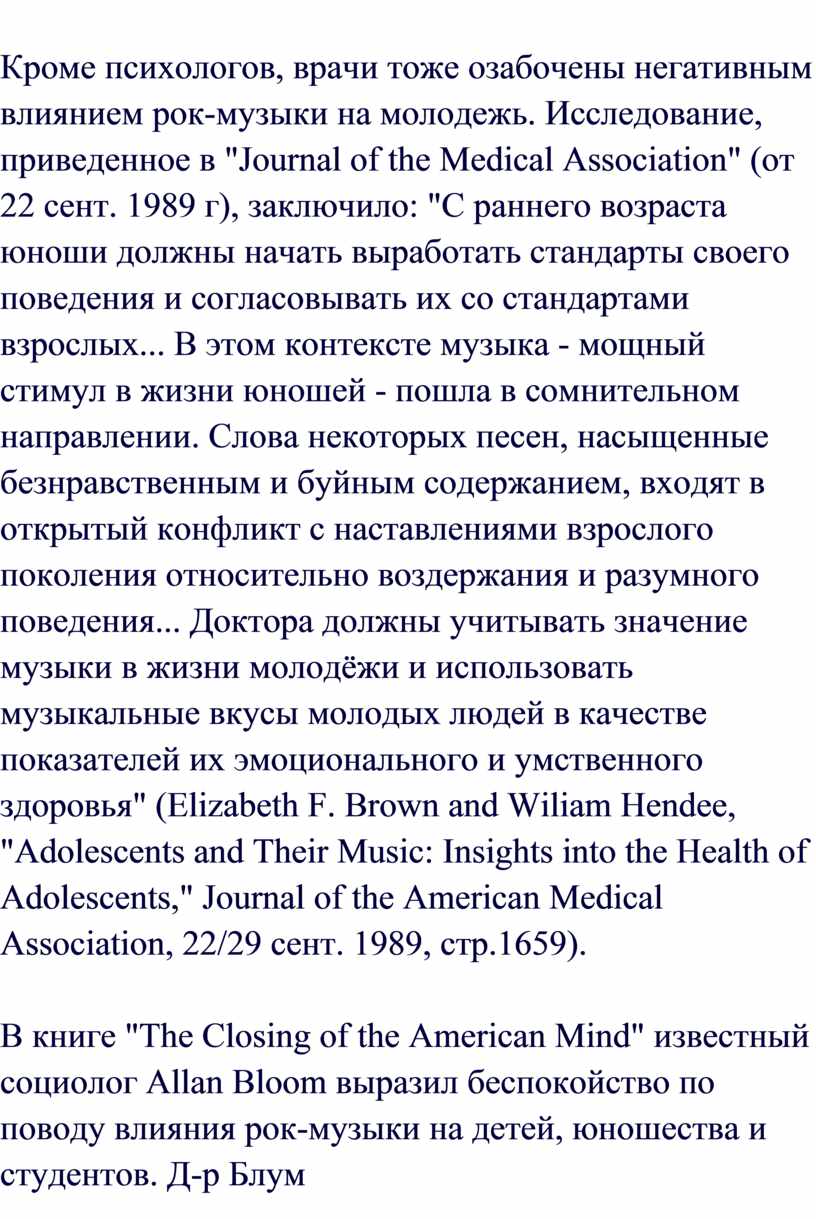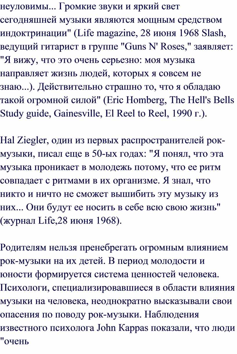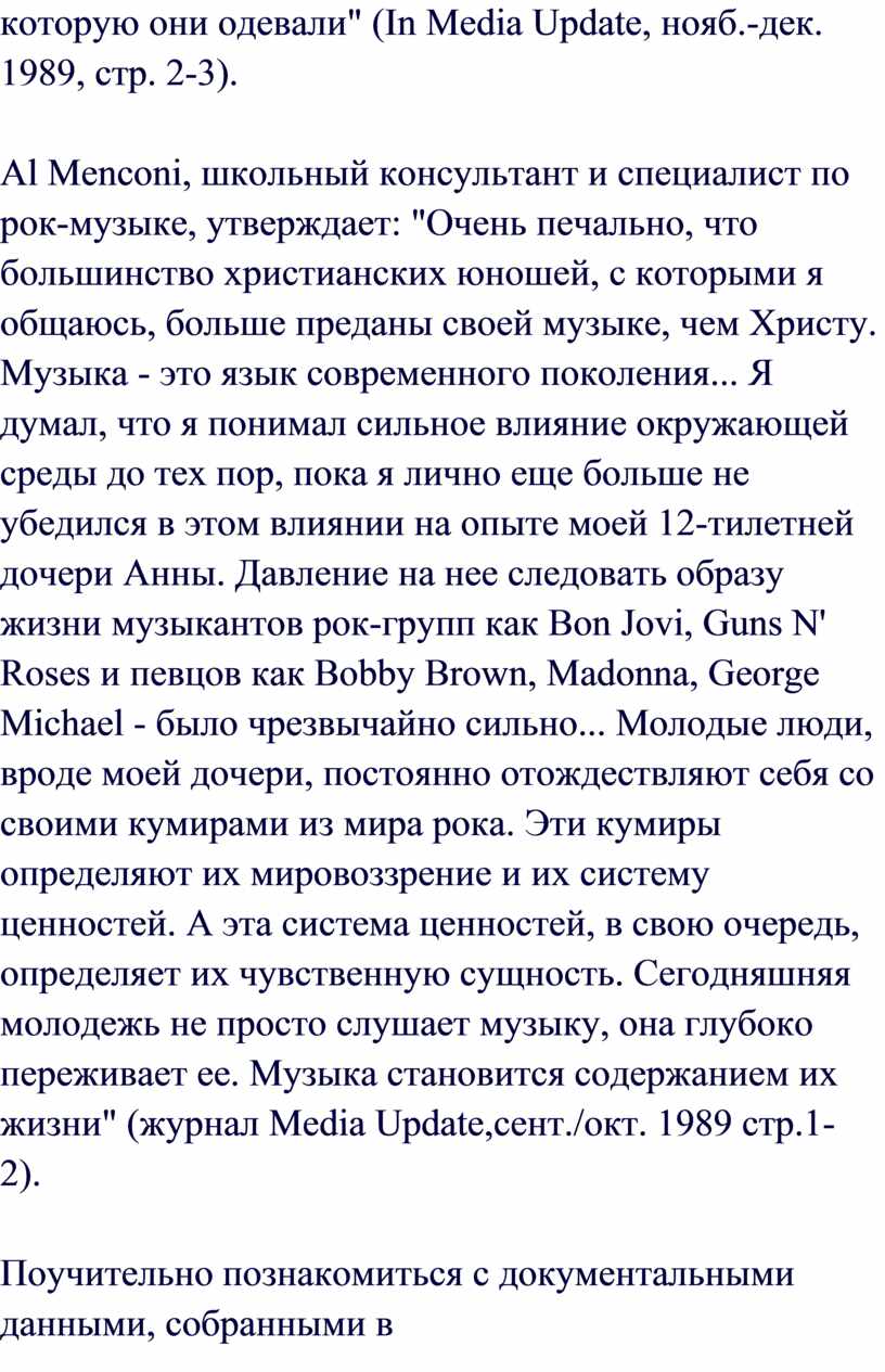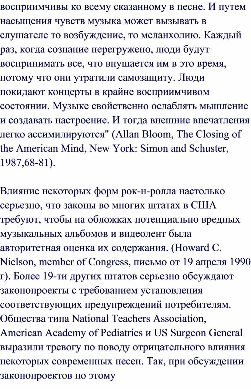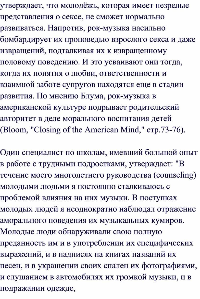 намеков в музыке, которой они увлекаются. Их разум еще не развит достаточно,