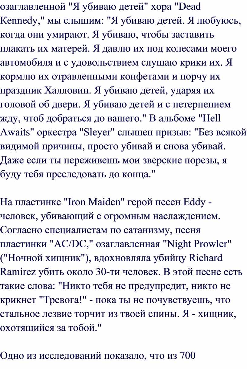 намеки в таких песнях. Также не доходит до их сознания сатанинская символика