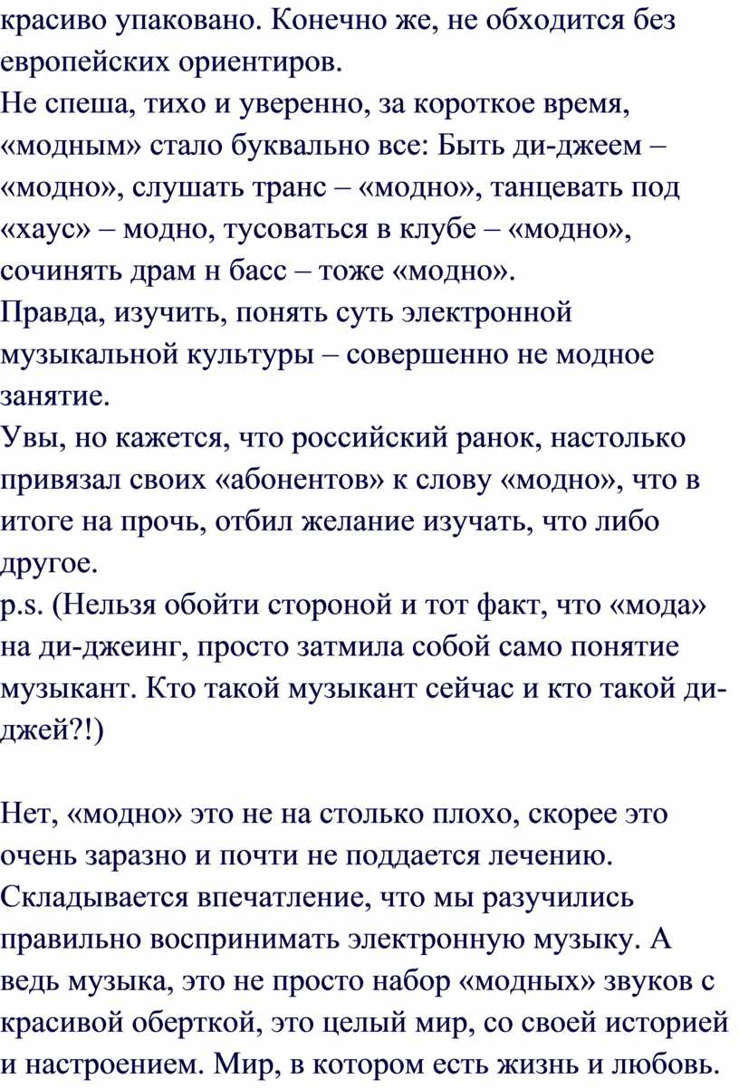 буйной музыки. Конечно, большинство из них не вникают в значения слов и
