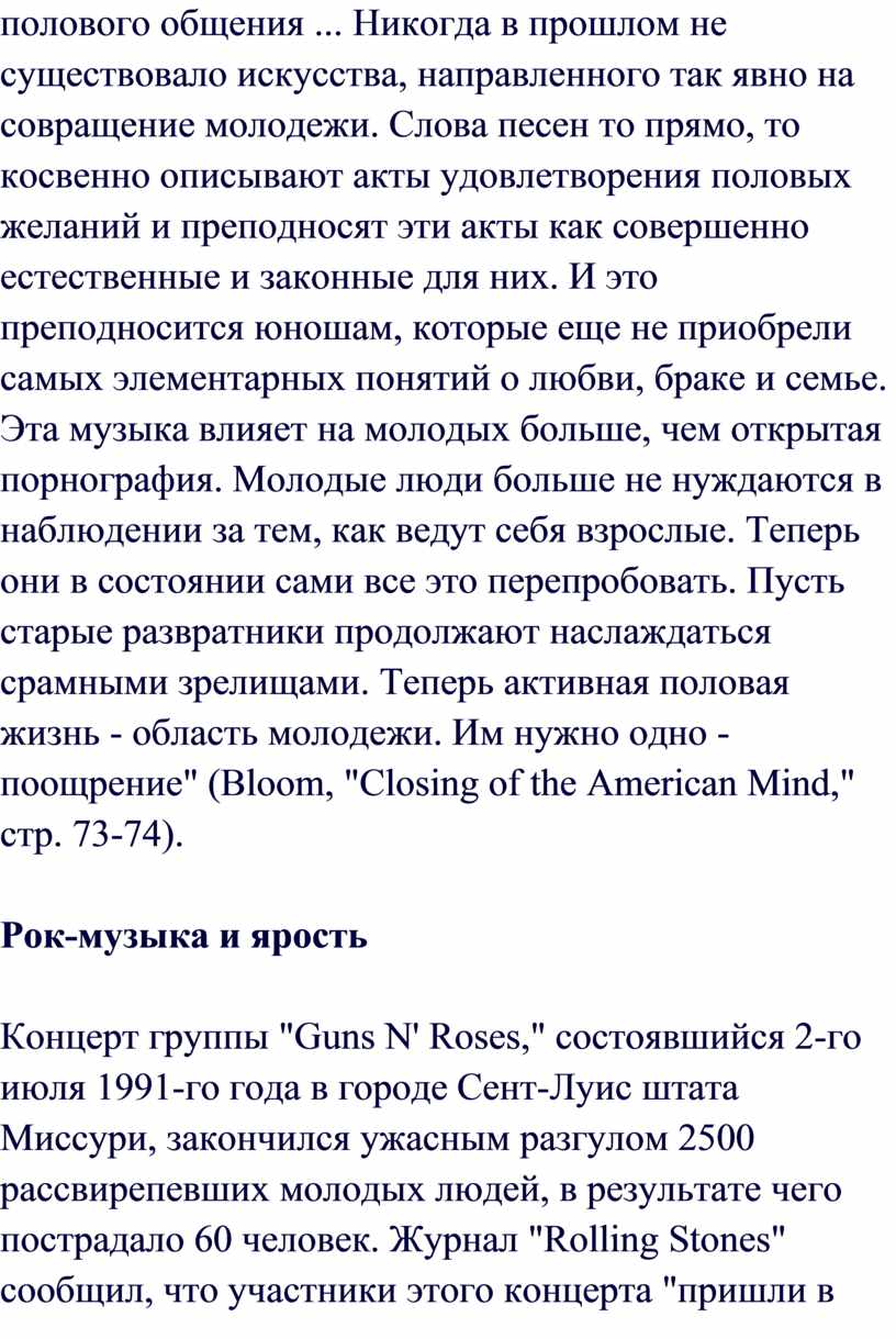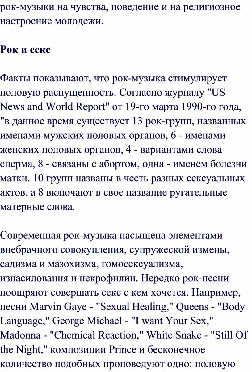сексуальное и буйное поведение; выявим антихристианские, оккультные и даже