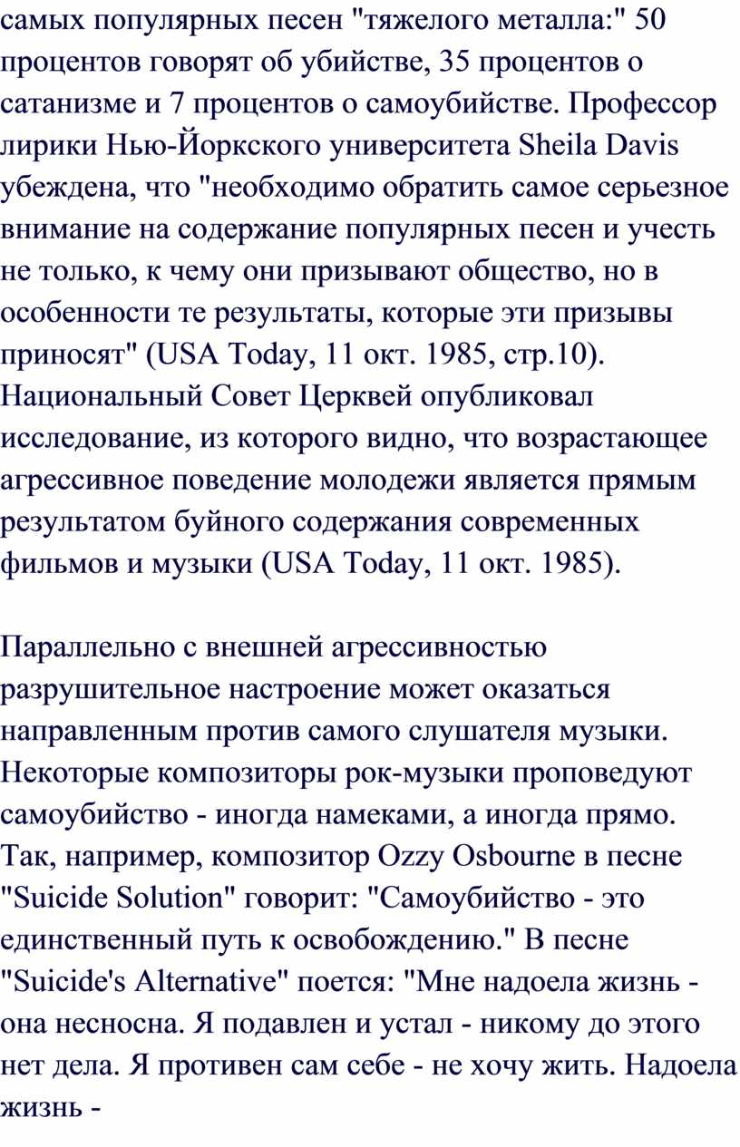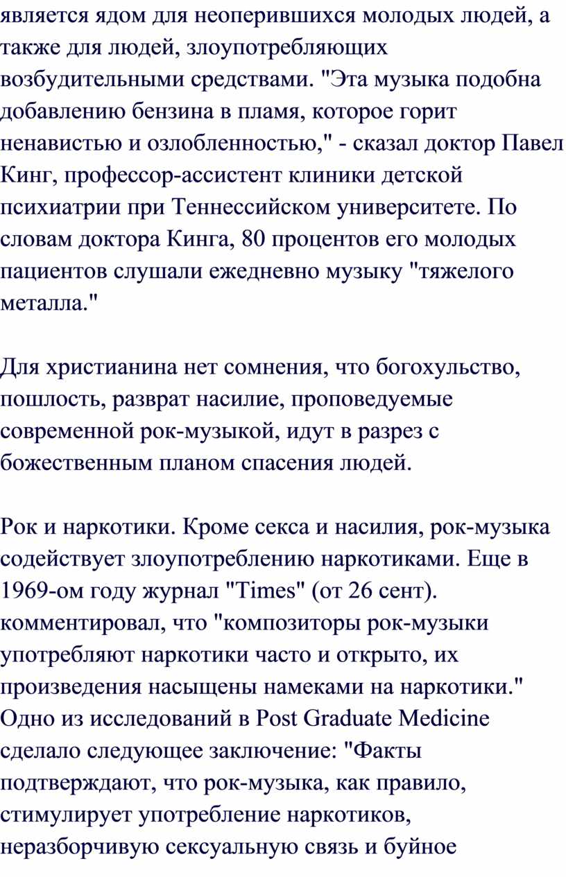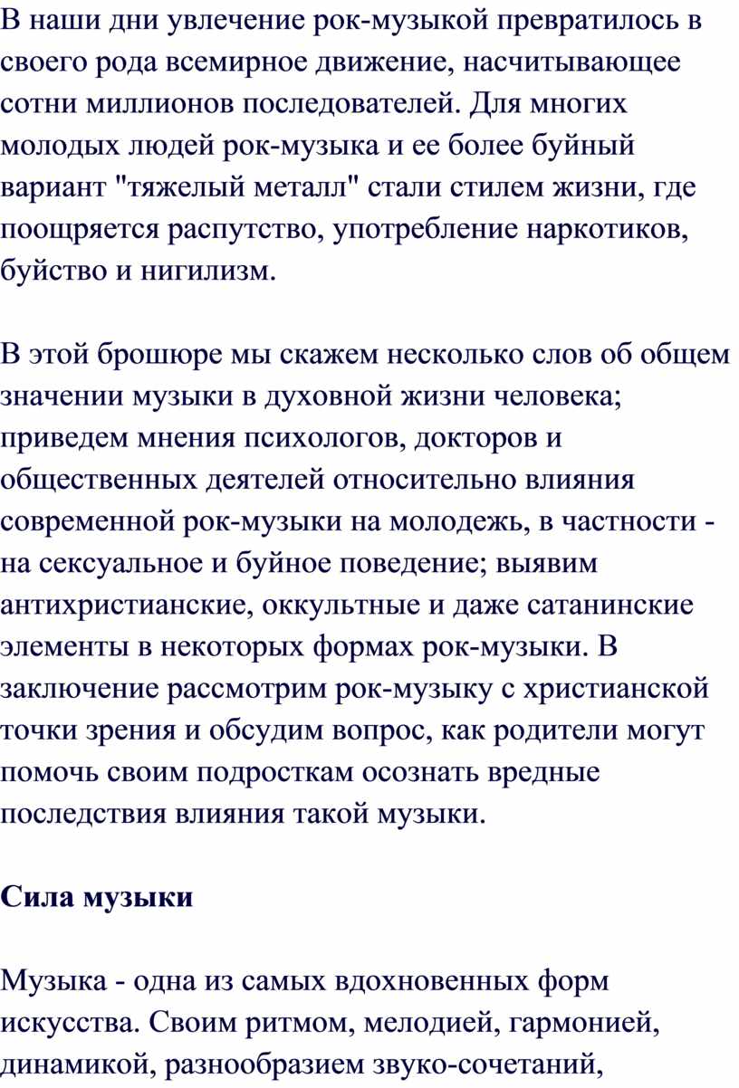 продолжительное слушание музыки "тяжелого металла" может духовно