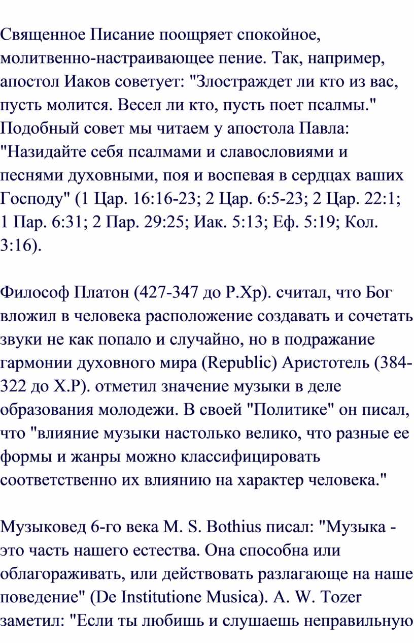 Священное Писание поощряет спокойное, молитвенно-настраивающее пение. Так,