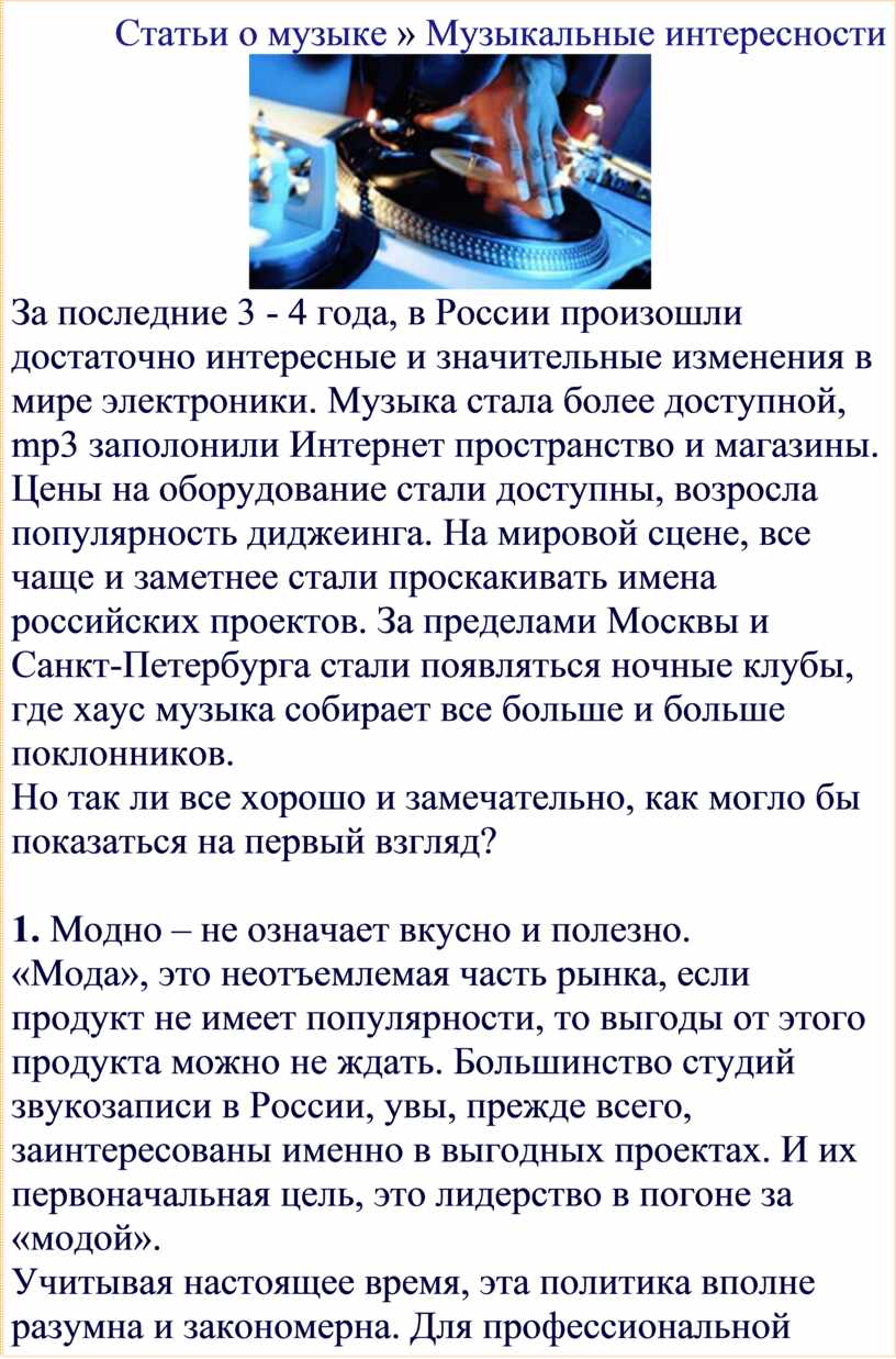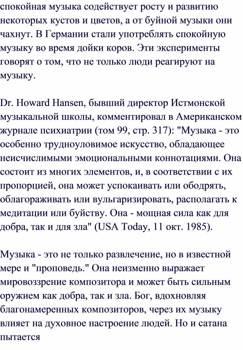 документальные данные о пользе спокойной музыки). Несколько лет тому назад в