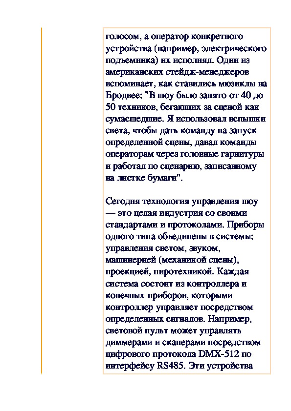стейджменеджер подавал командыголосом, а оператор конкретного