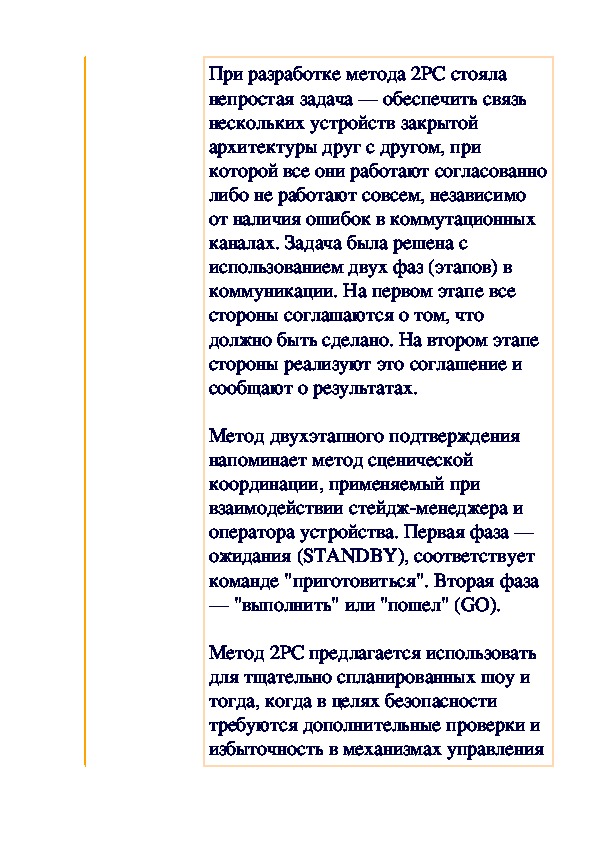 протокола (MIDI Show Control 1.1).При разработке метода 2PC стояла