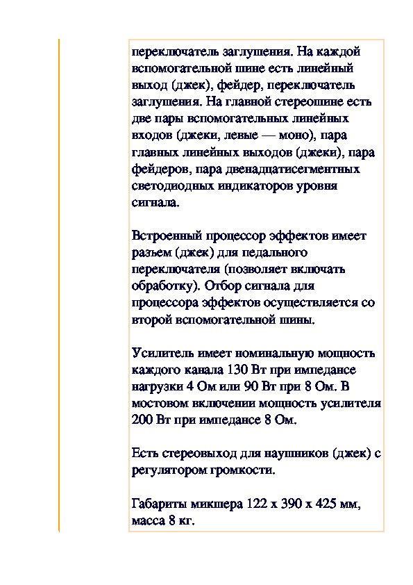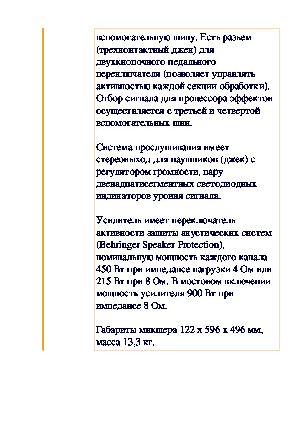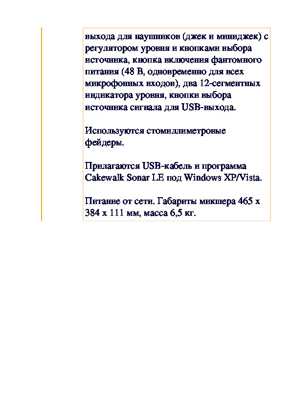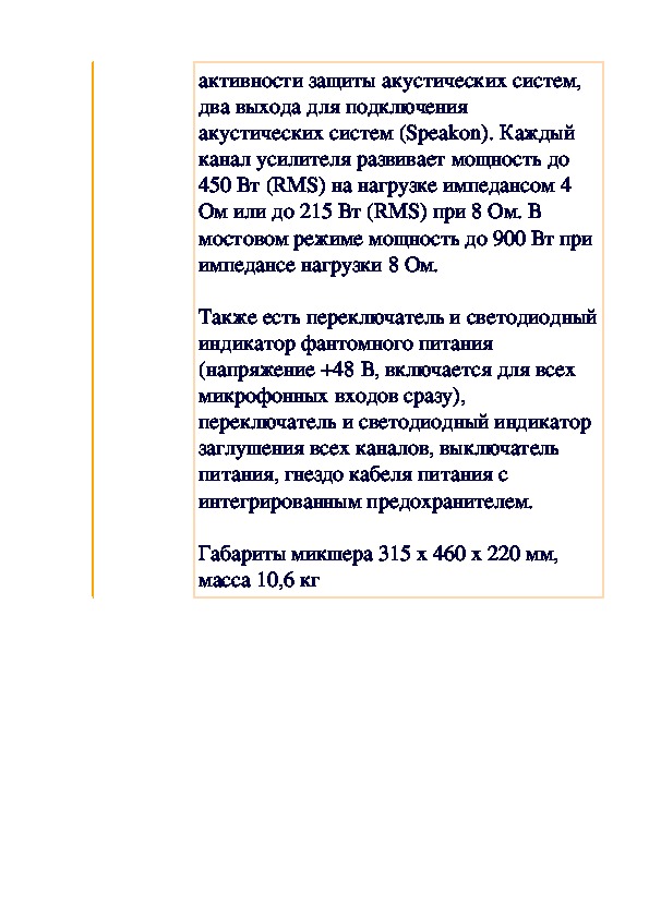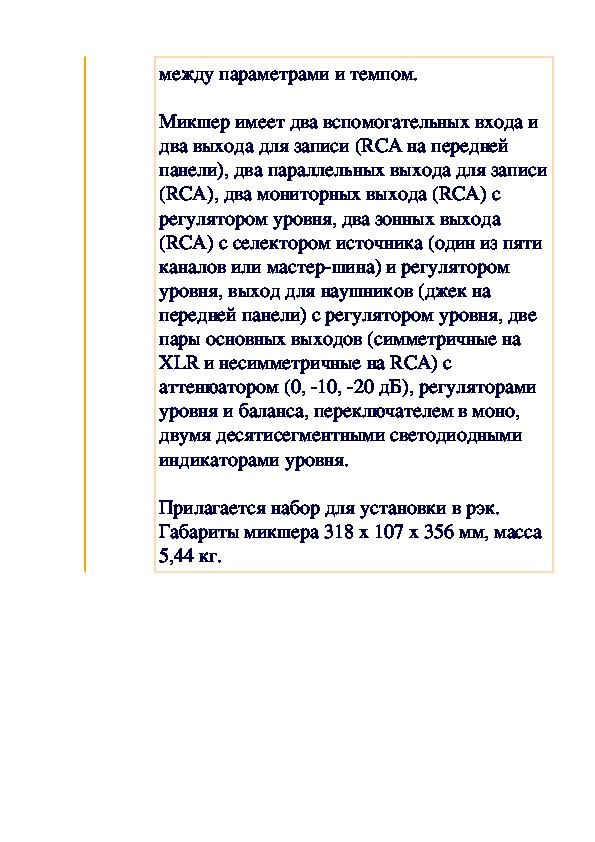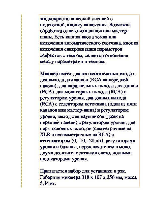 Прилагается набор для установки в рэк. Габариты микшера 318 x 107 x 356 мм, масса 5,44 кг.