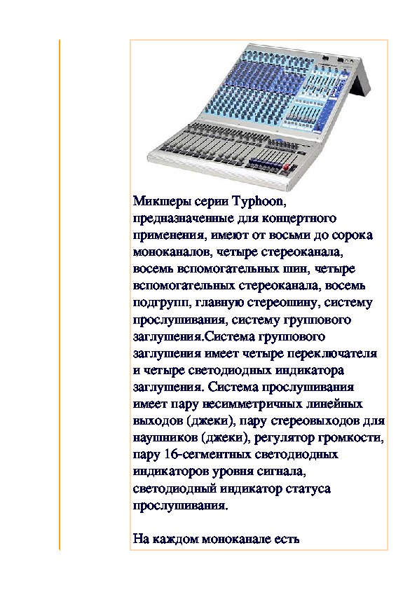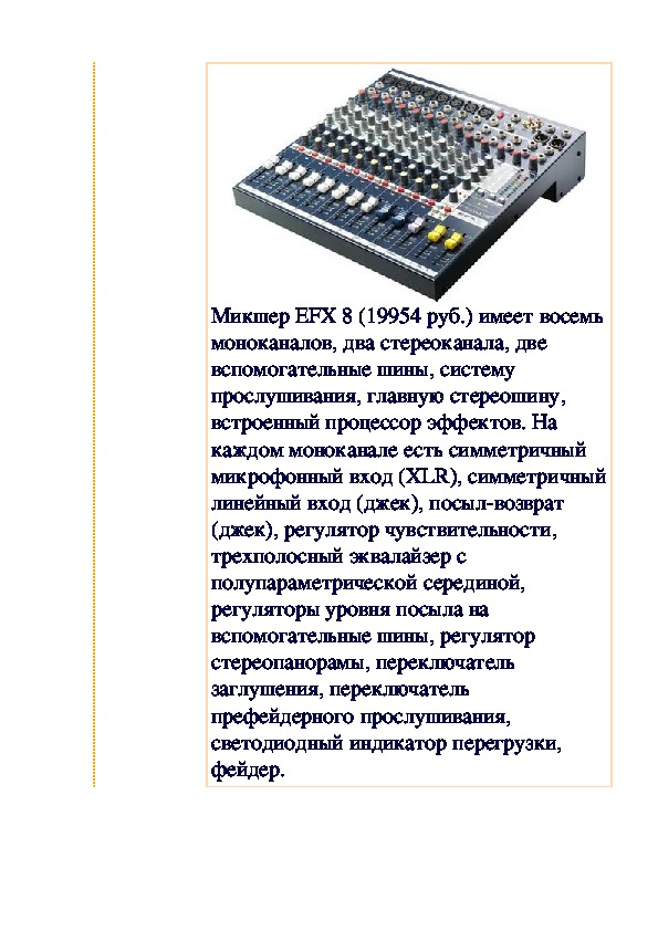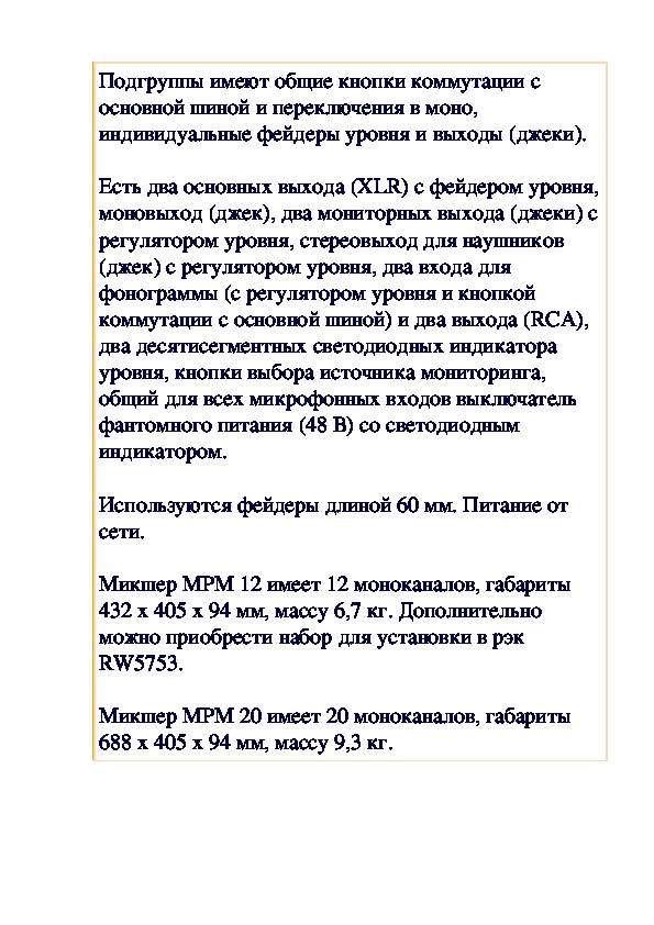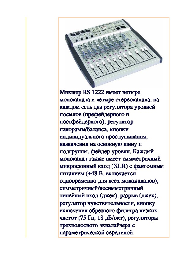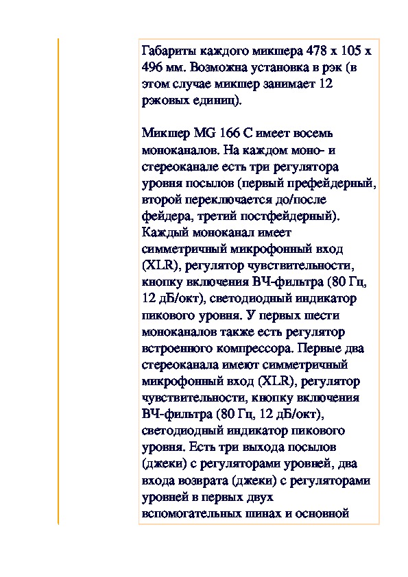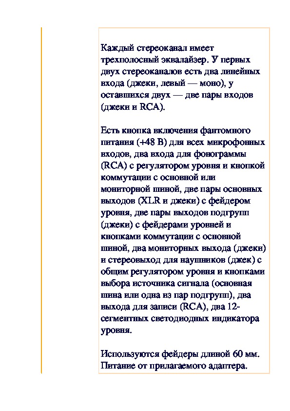 Прилагается набор для установки в рэк. Габариты микшера 318 x 107 x 356 мм, масса 5,44 кг.