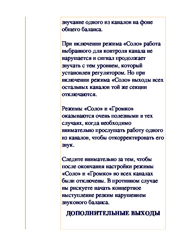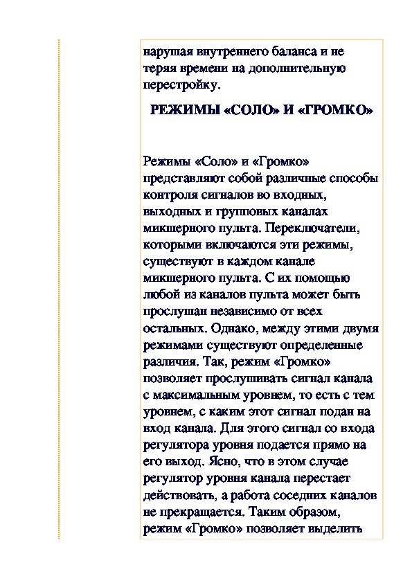 РЕЖИМЫ «СОЛО» И «ГРОМКО»