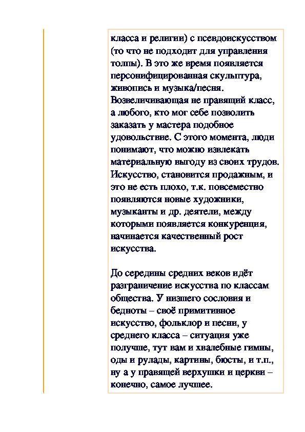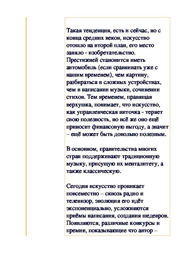 нетленные шедевры (среди них иживопись, и музыка), именно в этот