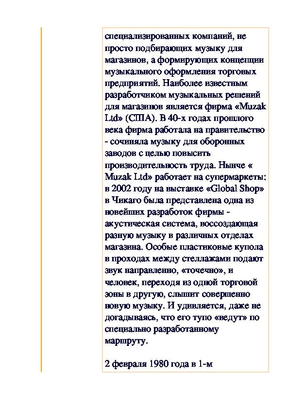 для магазинов является фирма «Muzak