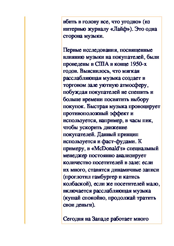 покупок. Быстрая музыка провоцирует