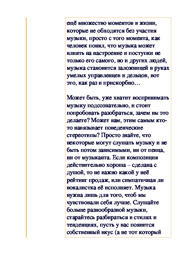 музыкального вкуса. Однако,