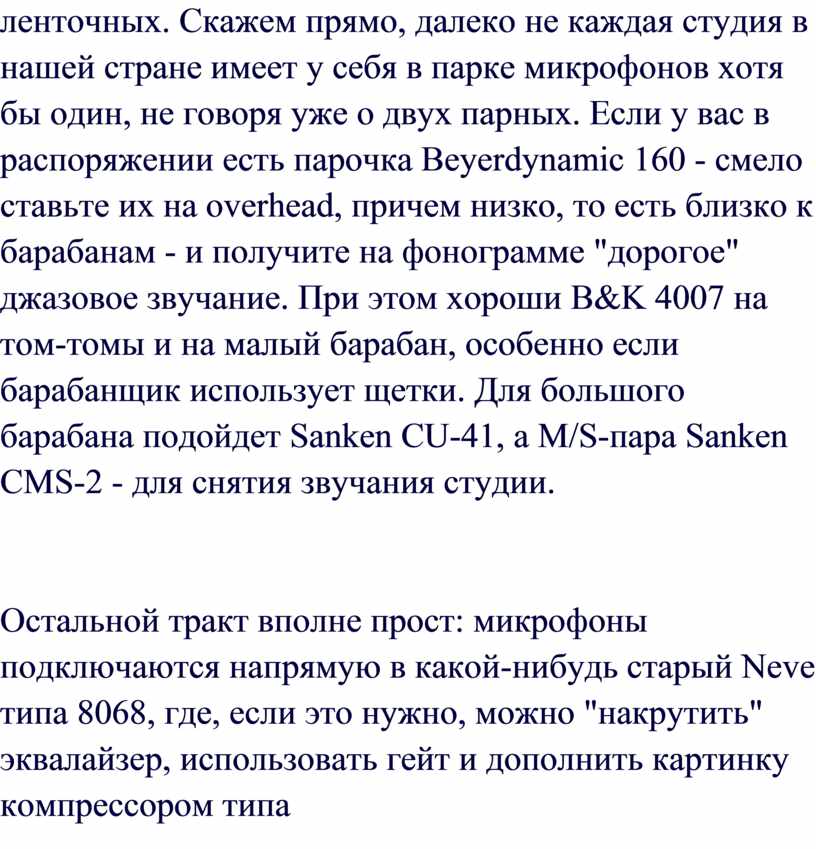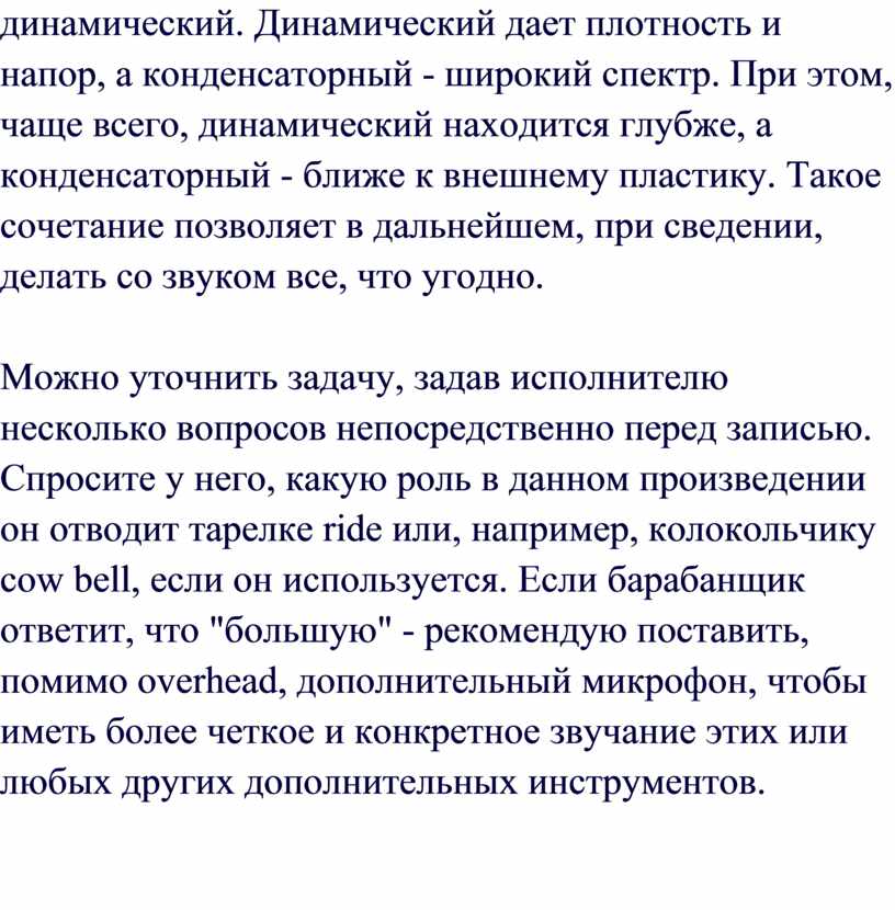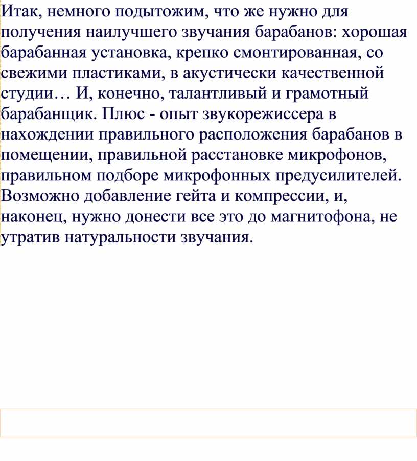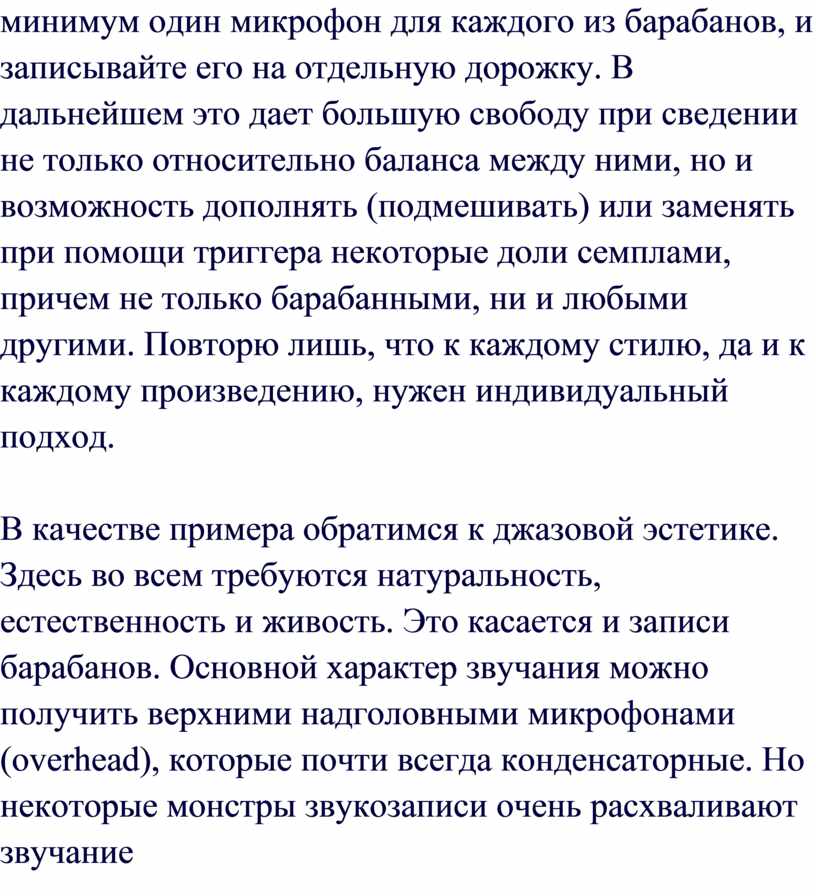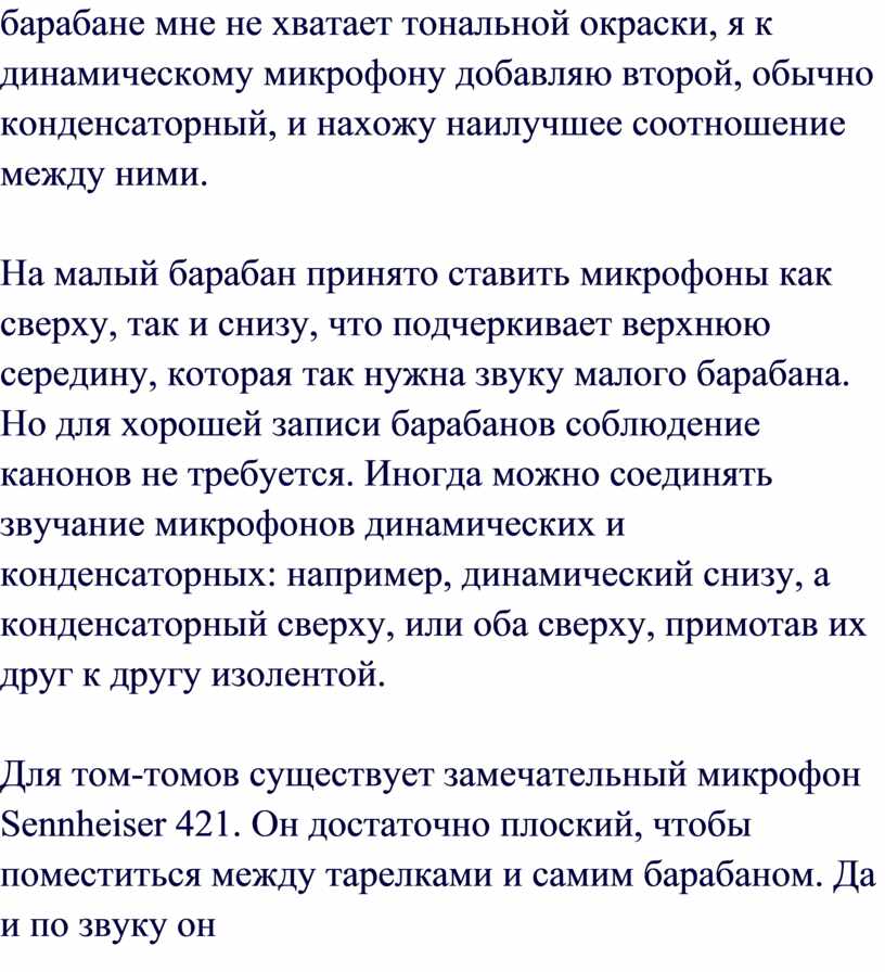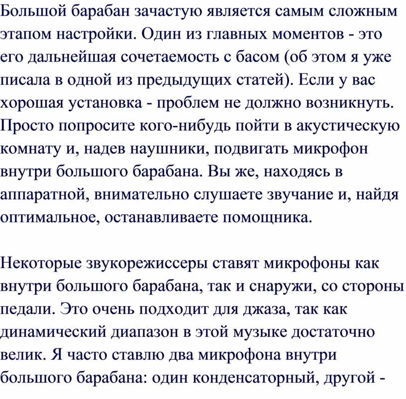 пытаются достичь хорошего качества звучания барабанов, из-за большого