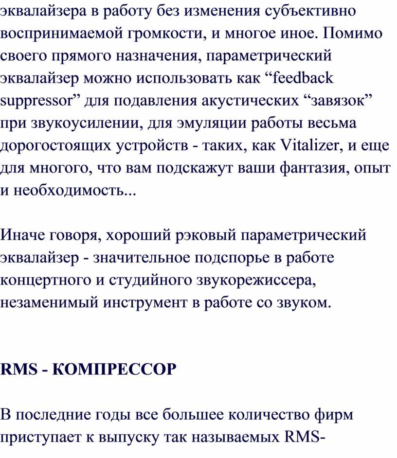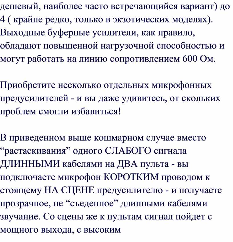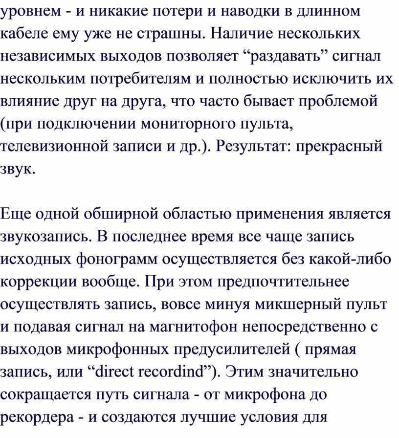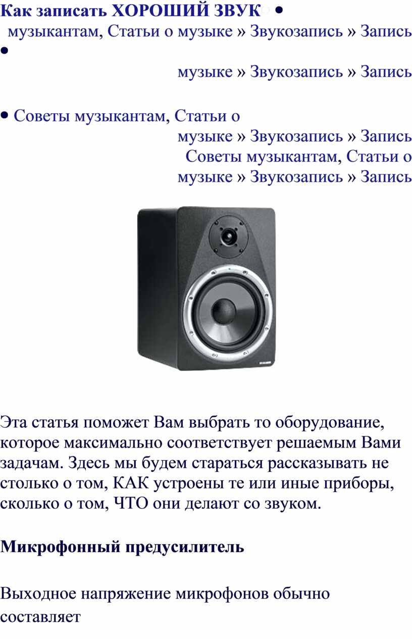 отсутствие посторонних шумов и искажений. То, что все это – забота инженера,