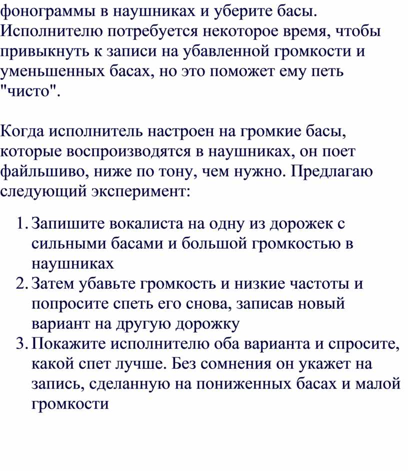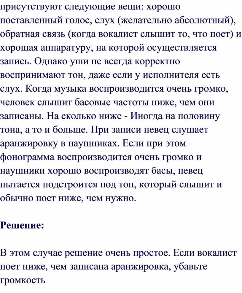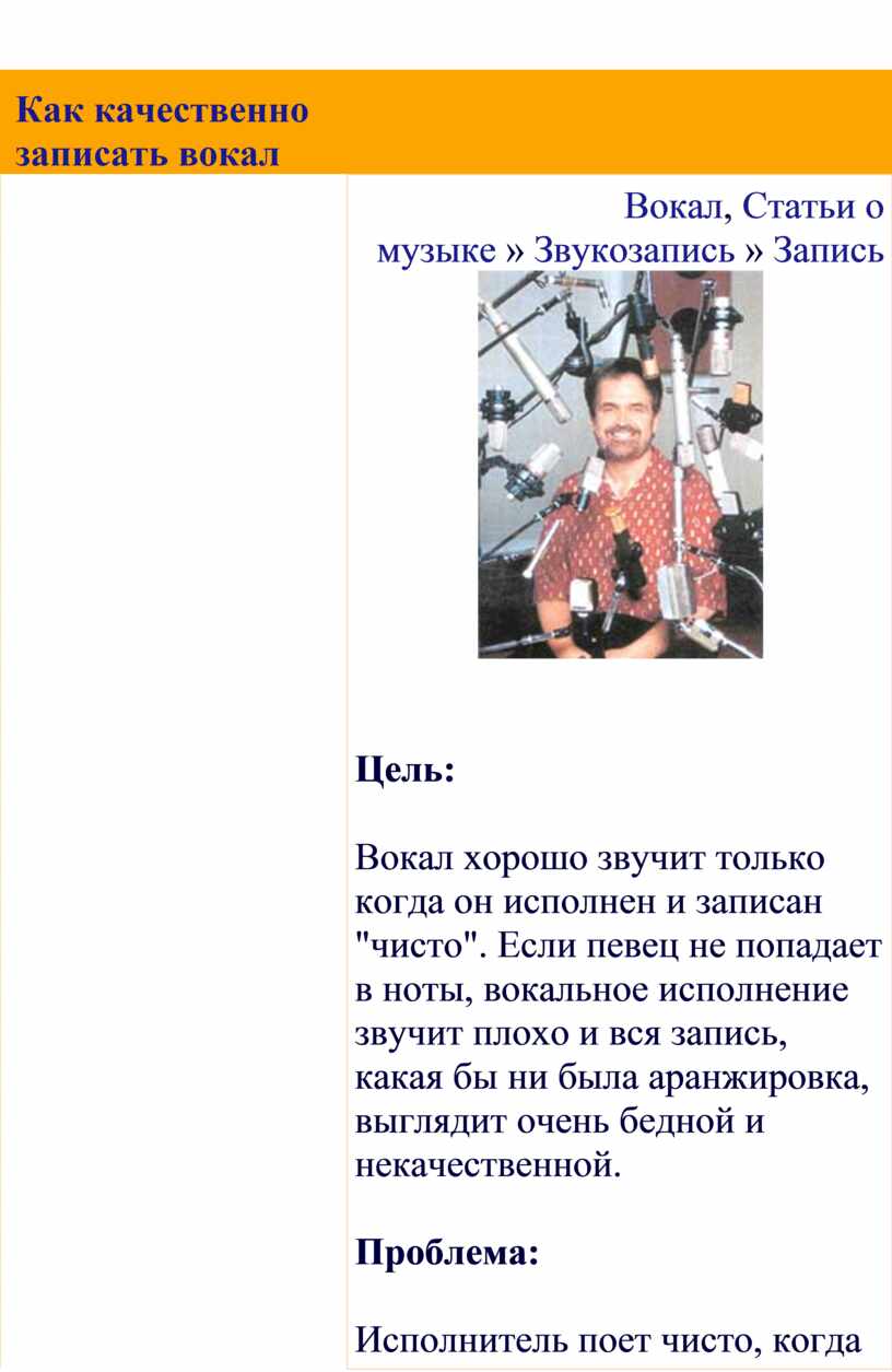(ни слишком высокий, ни слишком низкий), техника обращения с микрофонами,
