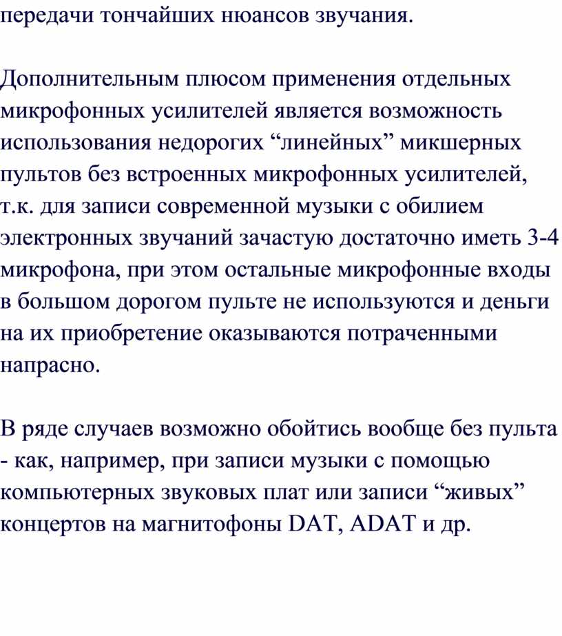 количества времени, необходимого на их настройку. Если звукозаписывающая