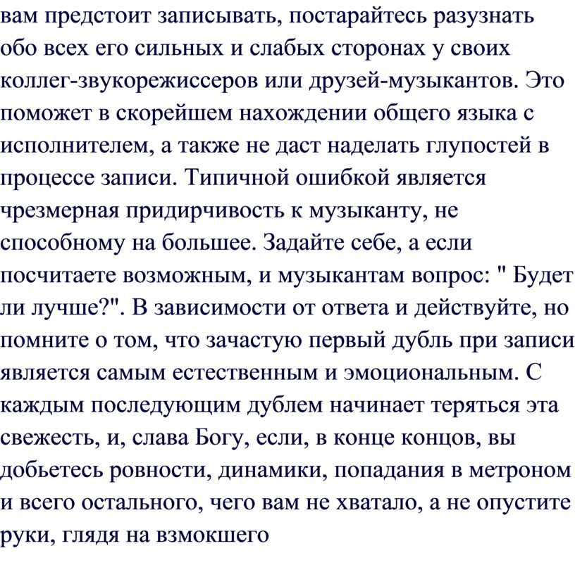 аспектов записи, самой музыки, сведения. Если мы говорим с продюсером, то он,