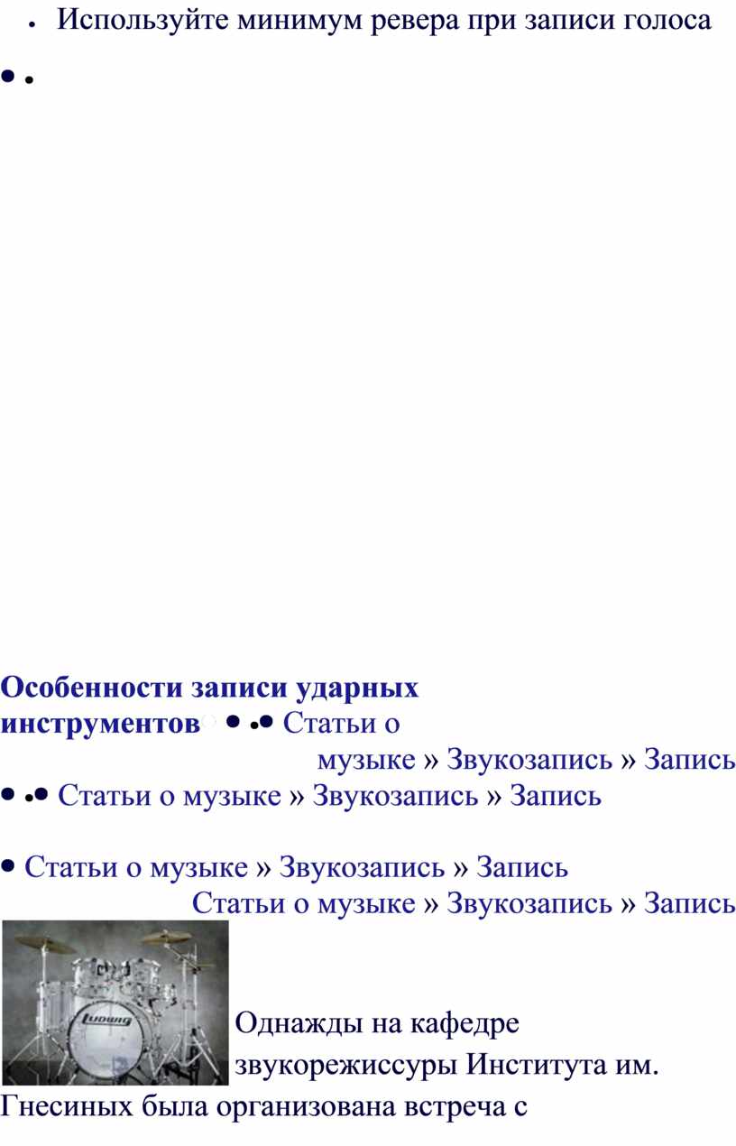 Статьи о музыке » Звукозапись » Запись