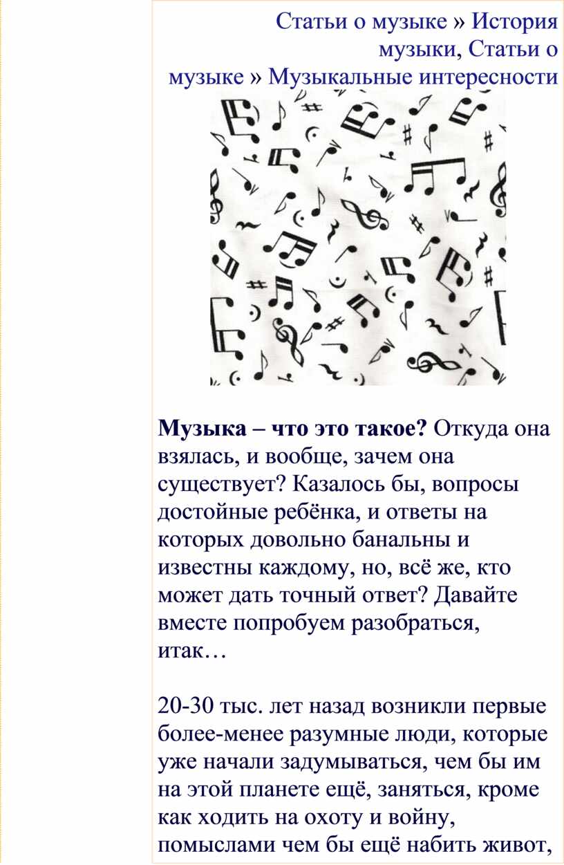 Статьи о музыке » История музыкиСтатьи о музыке » Музыкальные интересности