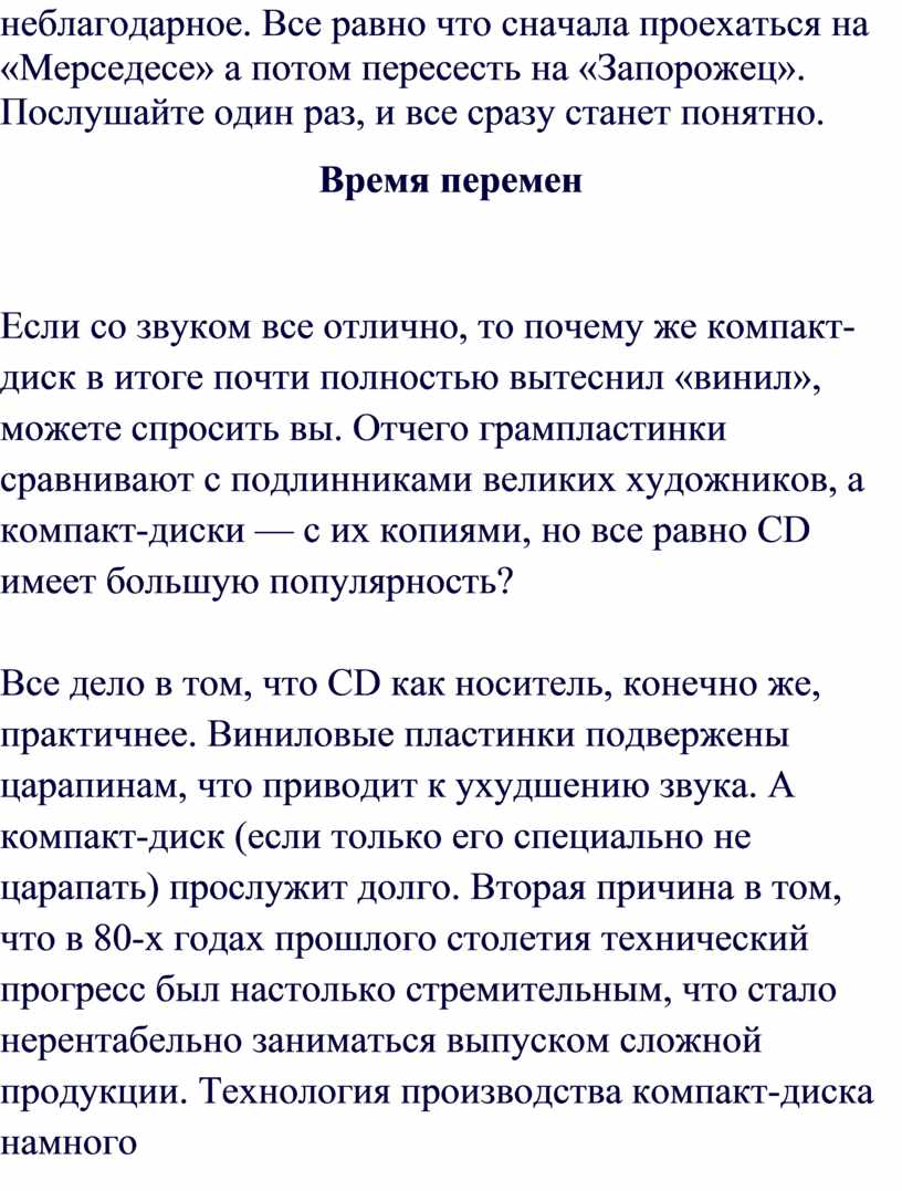 Видите – крутятся диски. Слышите - в ритме, навязанном чужой волей, бьется покорное сердце. Чувствуете – чем пахнет? Да, ладно вам, успокойтесь. Поставьте Шуберта, Шумана, Чайковского или Вивальди. Стимульните свой творческий импульс «Болеро» Равеля, или «Танцем с саблями» Хачатуряна. Никогда не забывайте о Моцарте… Все это – тоже музыка, которая не менее иных звукосочетаний способна влиять на сознание, подсознание и прочие малоизученные «рычаги управления» человеком. Выбирайте сами. Имеющие уши да услышат свою музыку.