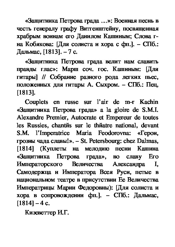 СПб., 1813 // Моск. ведомости, 1813. – № 65.