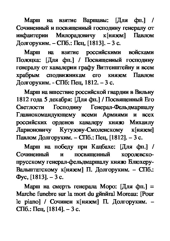 Долгорукий П.И.Козацкий марш для фортепиано, посвященный