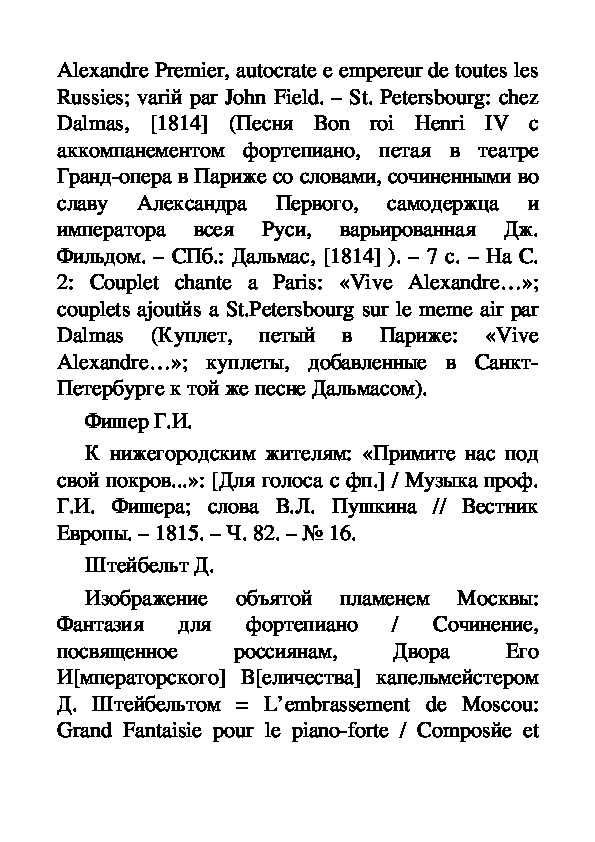 фортепиано. – СПб.: Пец; М.: Ленгольд, [1815]. –