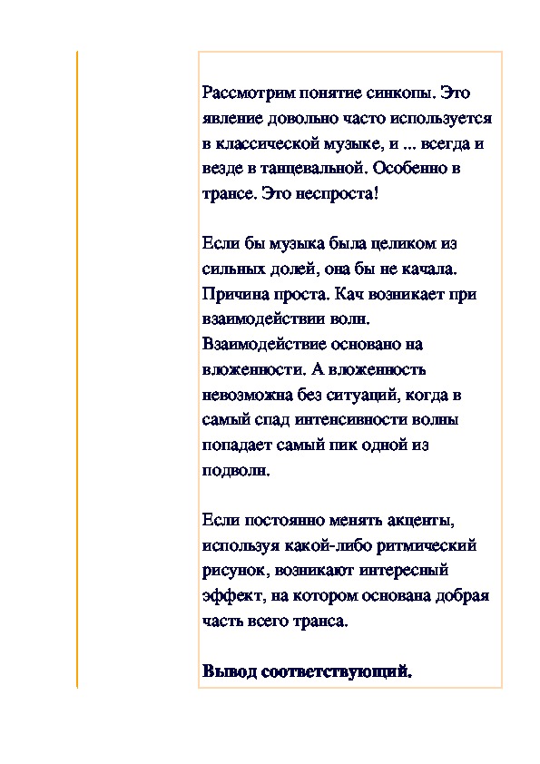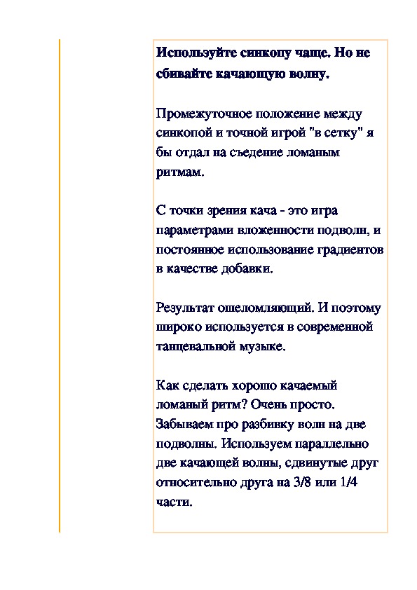 танцевальной, или в полной тишине.Темп менялся от 60 до 120 и более