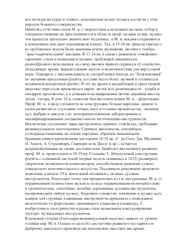 технич. состояния М. и. может служить мерилом уровня муз. культуры. Нек