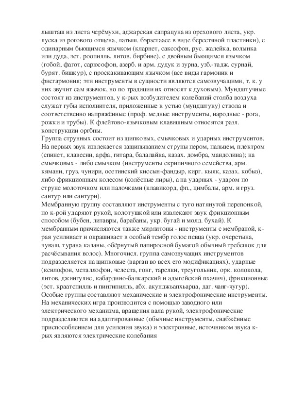 инструментов служит столб воздуха, заключённый в канале ствола, струнных