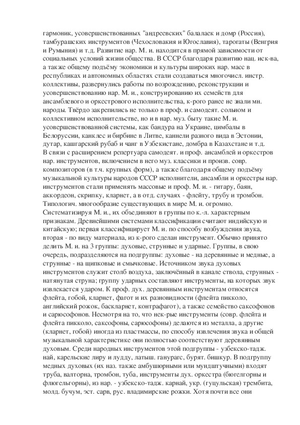 кларнет и т.д. К профессиональным обычно относят М. и., входящие в состав