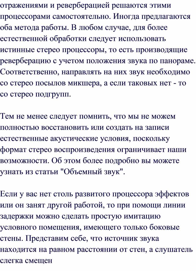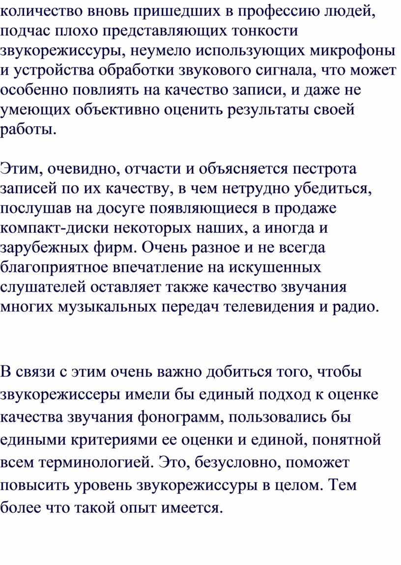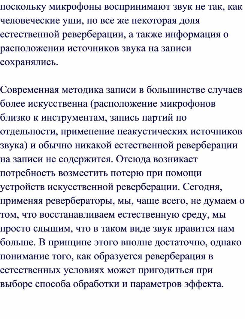 звучания, утрата его непосредственности, реалистичности. Вот здесь-то на