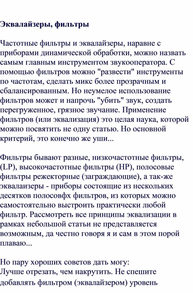 обработки. Наиболее часто встречаются: фильтр для обрезки нежелательных