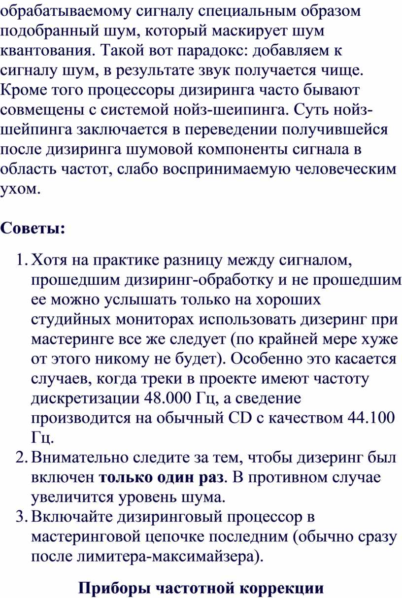 “очистки” источников), при сведении, при мастеринге фонограмм для записи на