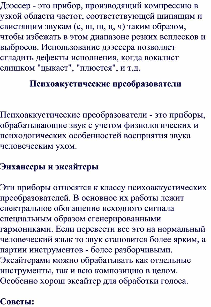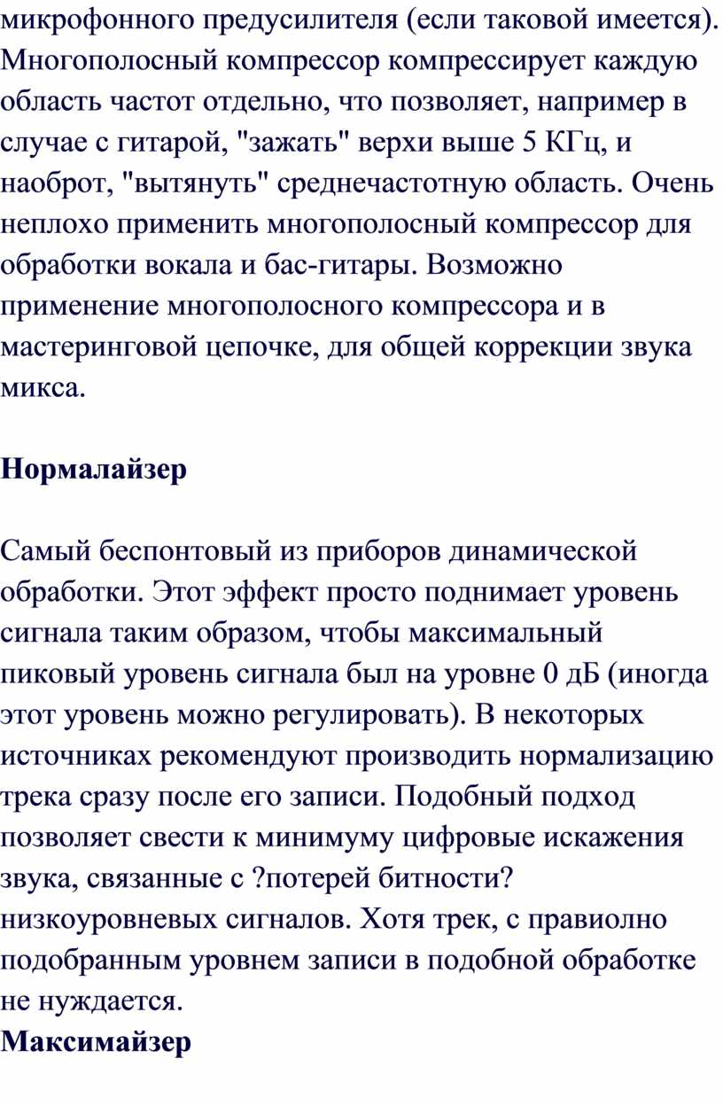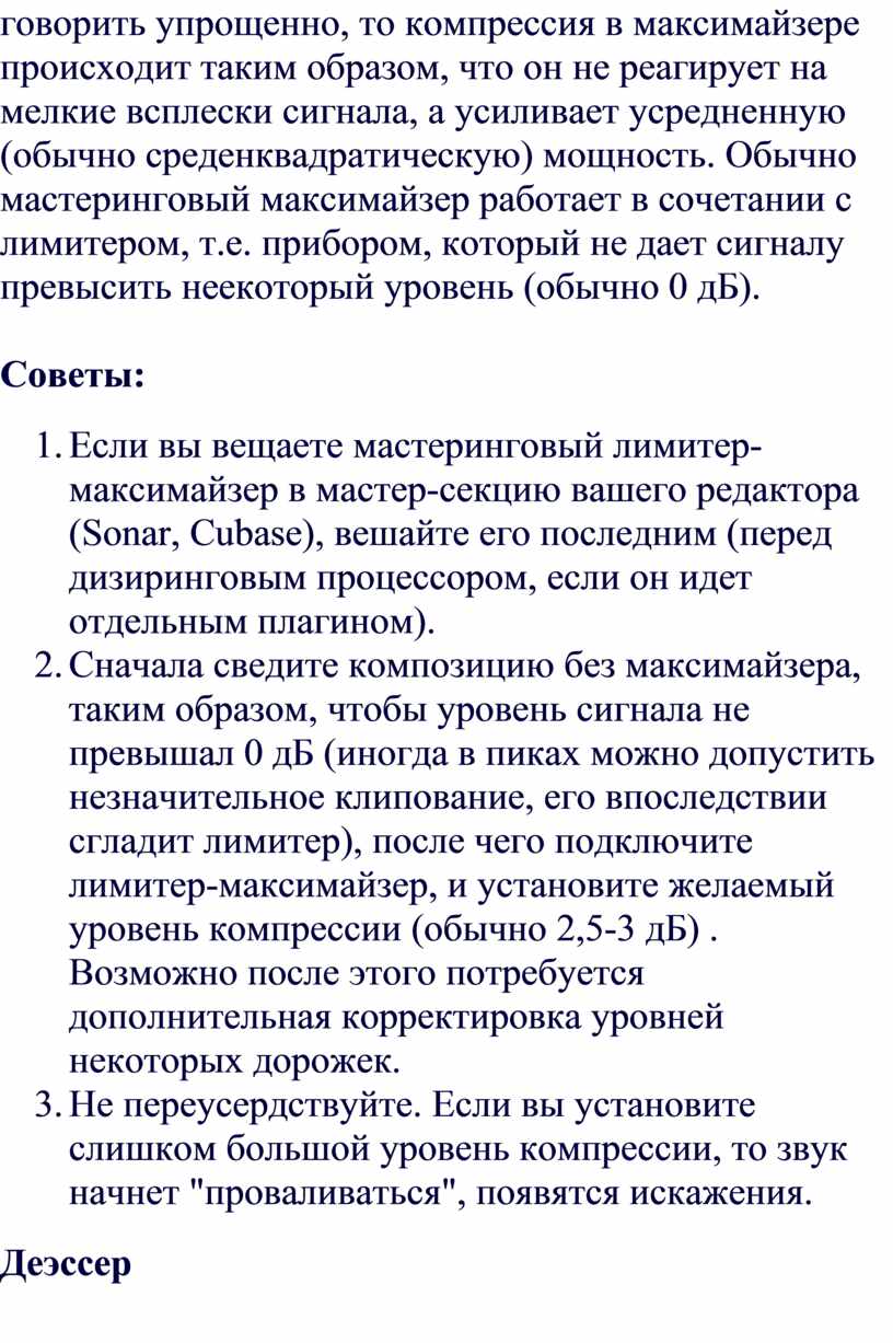 устройствами - гейтами, пик-лимитерами и др. Включив такое устройство -