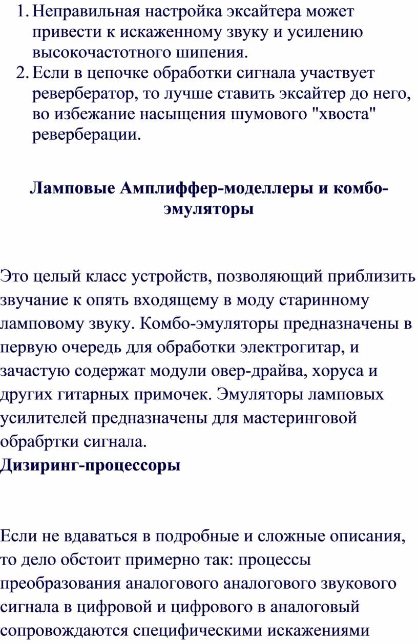 естественным, начинает “дышать”. Вокал после обработки его эксайтером