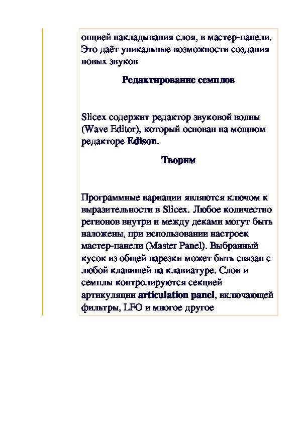· Полный комплект собственных процессоров обработки для мастеринга: reverb, compressor, procedural equalizer, distortion, phaser, flanger, bass boost, delay line и так далее.