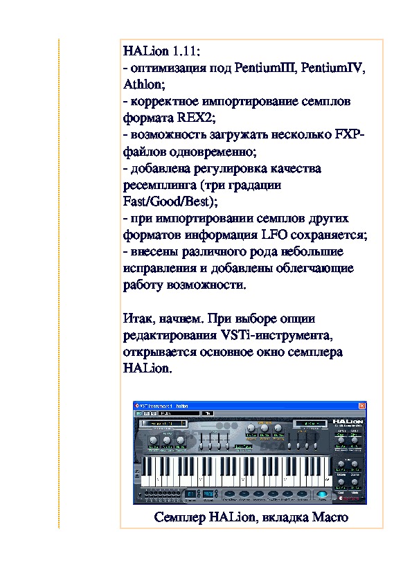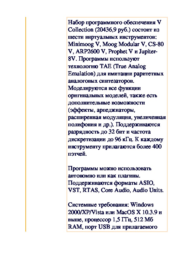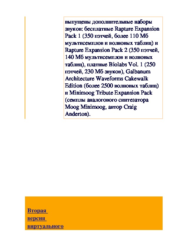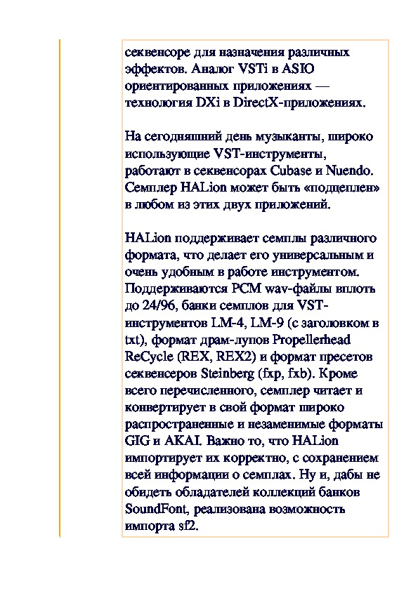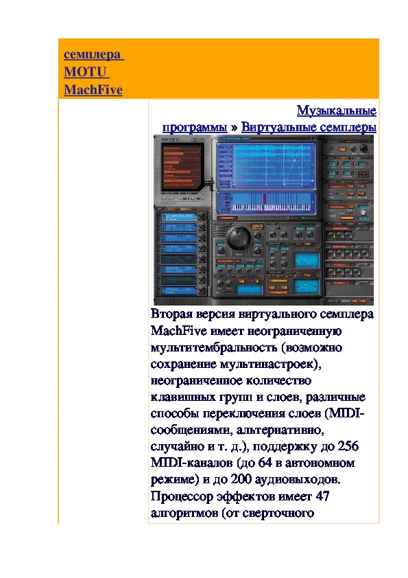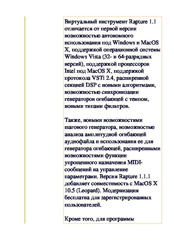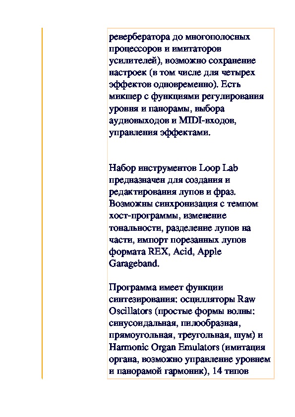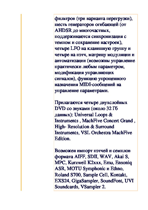· Возможность функционирования в качестве клиента (плагина) для платформ VSTi, DXi и ReWire.
