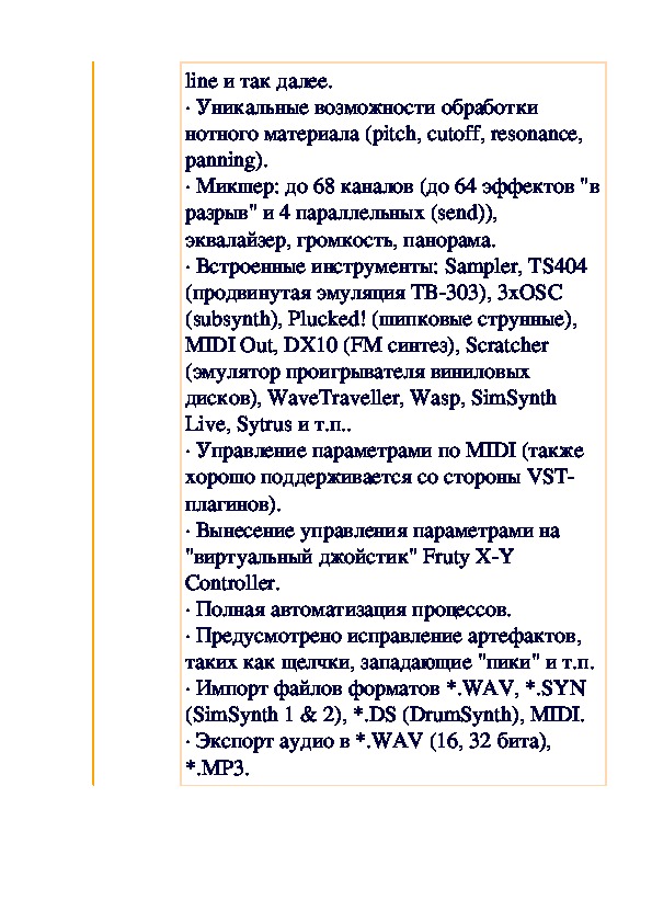 · Уникальные возможности обработки нотного материала (pitch, cutoff, resonance, panning).