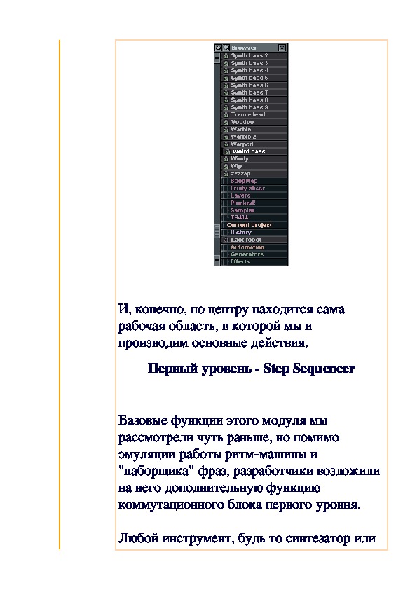 И уже на данном этапе мы можем создать стандартную техно-композицию, используя мелодические и ритмические фразы. Но, на этом функциональные особенности программы не заканчиваются, а только начинаются. Переходим к следующему разделу.