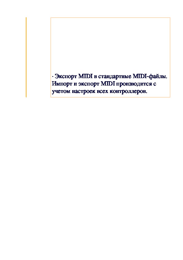 · Экспорт MIDI в стандартные MIDI-файлы. Импорт и экспорт MIDI производится с учетом настроек всех контроллеров.