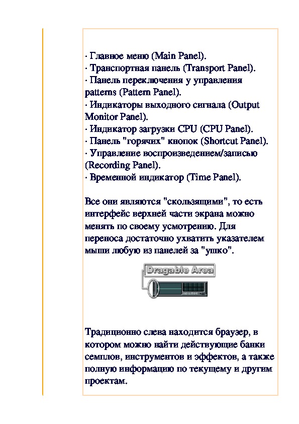 Итак, сверху мы имеем в наличии место для "скользящих" панелей, в числе которых: