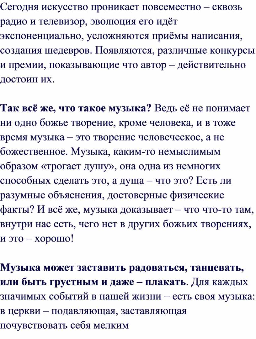 Музыка вечна, и развитие человечества без нее немыслимо.