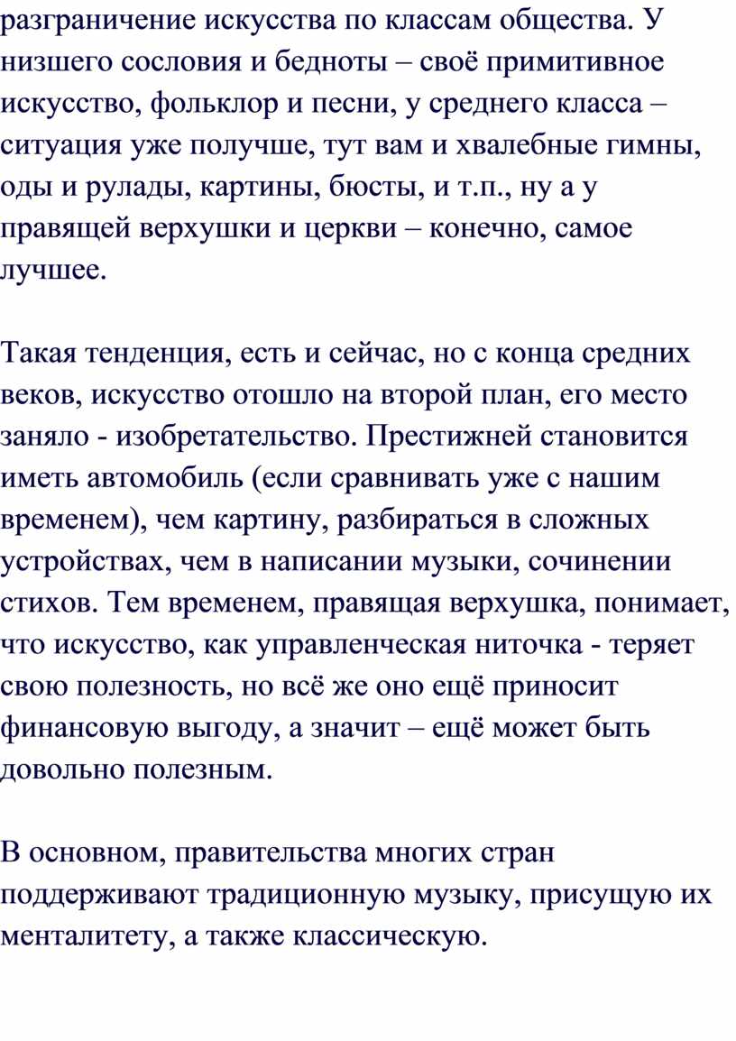 развивалась народная музыка (фольклор), к ней добавлялись слова, многие