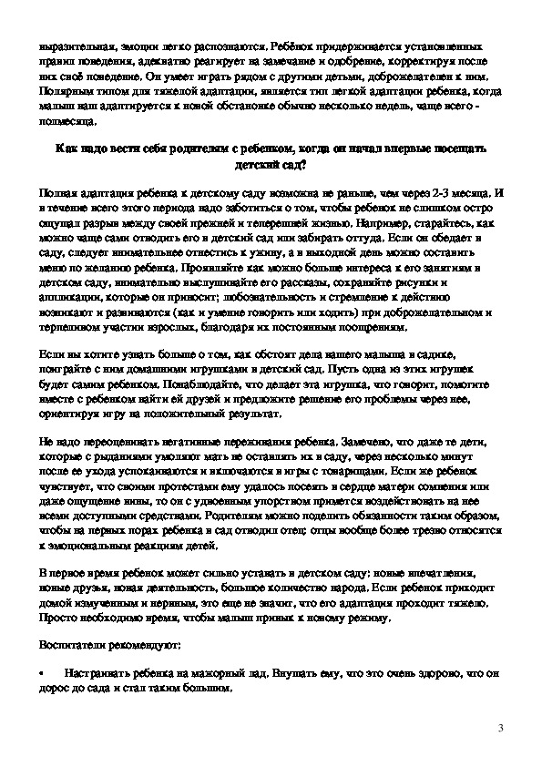 домой измученным и нервным, это еще не значит, что его адаптация проходит тяжело.