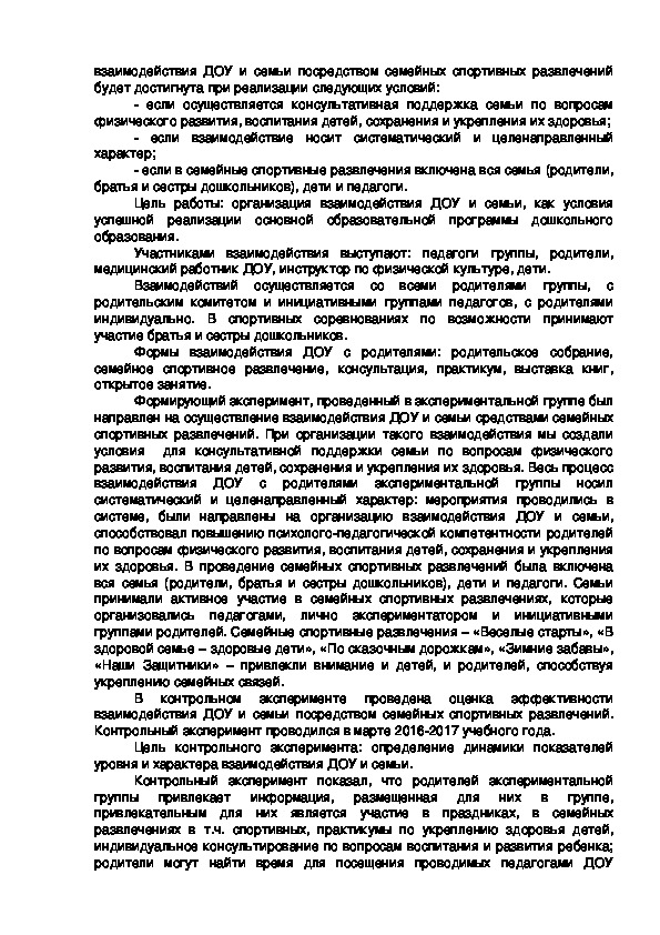 исследования, по которой мы предположили, что эффективность процессавзаимодействия ДОУ и семьи посредством семейных спортивных развлечений