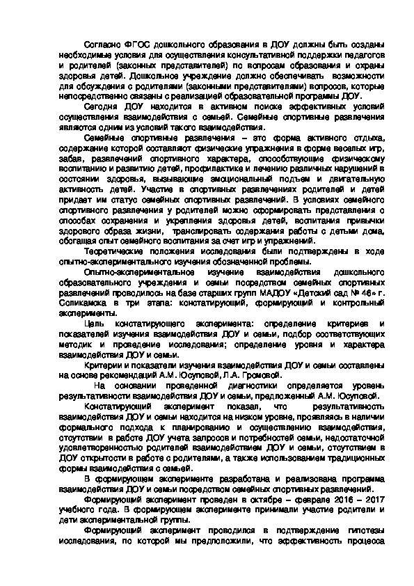 ДОУ и семьи посредством семейных спортивных развлечений.