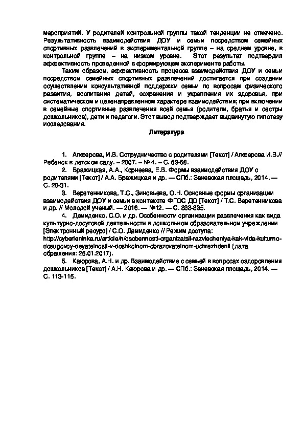 2. Бражицкая, А.А., Корнеева, Е.В. Формы взаимодействия ДОУ с