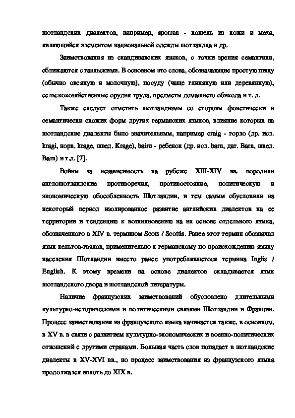 отношений с другими странами. Большая часть слов попадает в шотландские