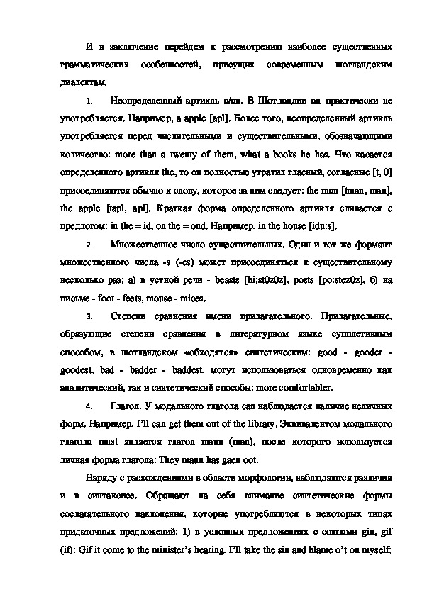 грамматических особенностей, присущих современным шотландским